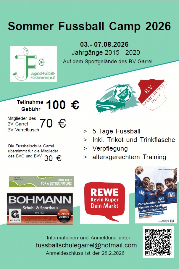 Eine Anmeldung ist bis zum 28. Februar (Samstag) digital möglich per E-Mail an fussballschulegarrel@hotmail.com.